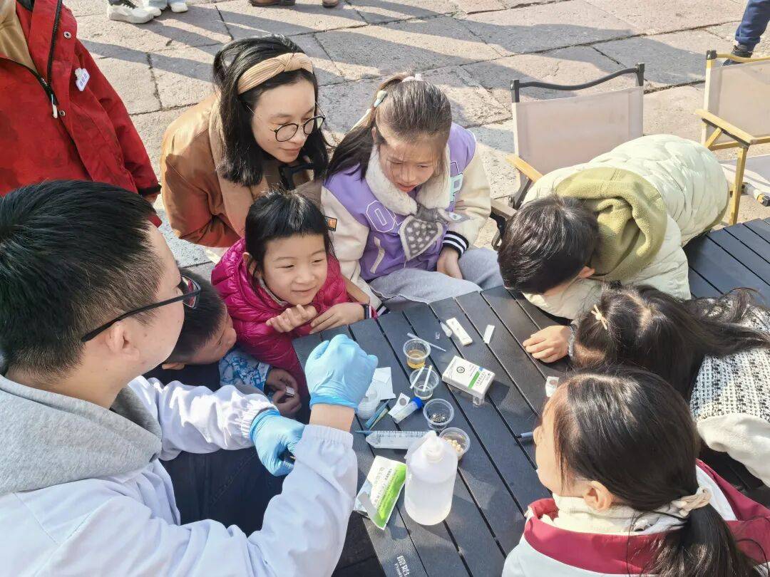 甜度会不会超标?原料新不新颖?孩子们把刚出锅的冻米糖送进“你点我检”互动区,正在专业人员的率领下,拿着检测卡为冻米糖食材做“体检”,当检测卡发生颜色变化时,现场惊讶声不竭。